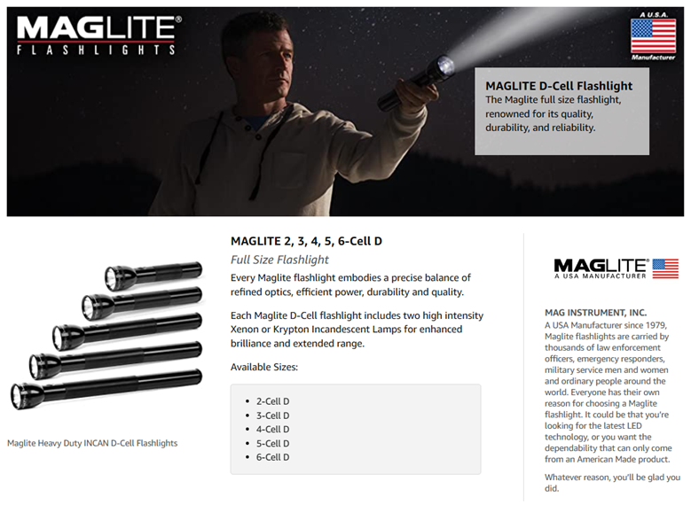 Maglite heavy-duty incandescent 3-cell D FLASHLIGHT, Black. Advanced lighting instrument made in America and built tough enough to last a lifetime with a spare lamp safely secured in the tail cap making it suitable for camping, climbing, fishing, hunting, etc.