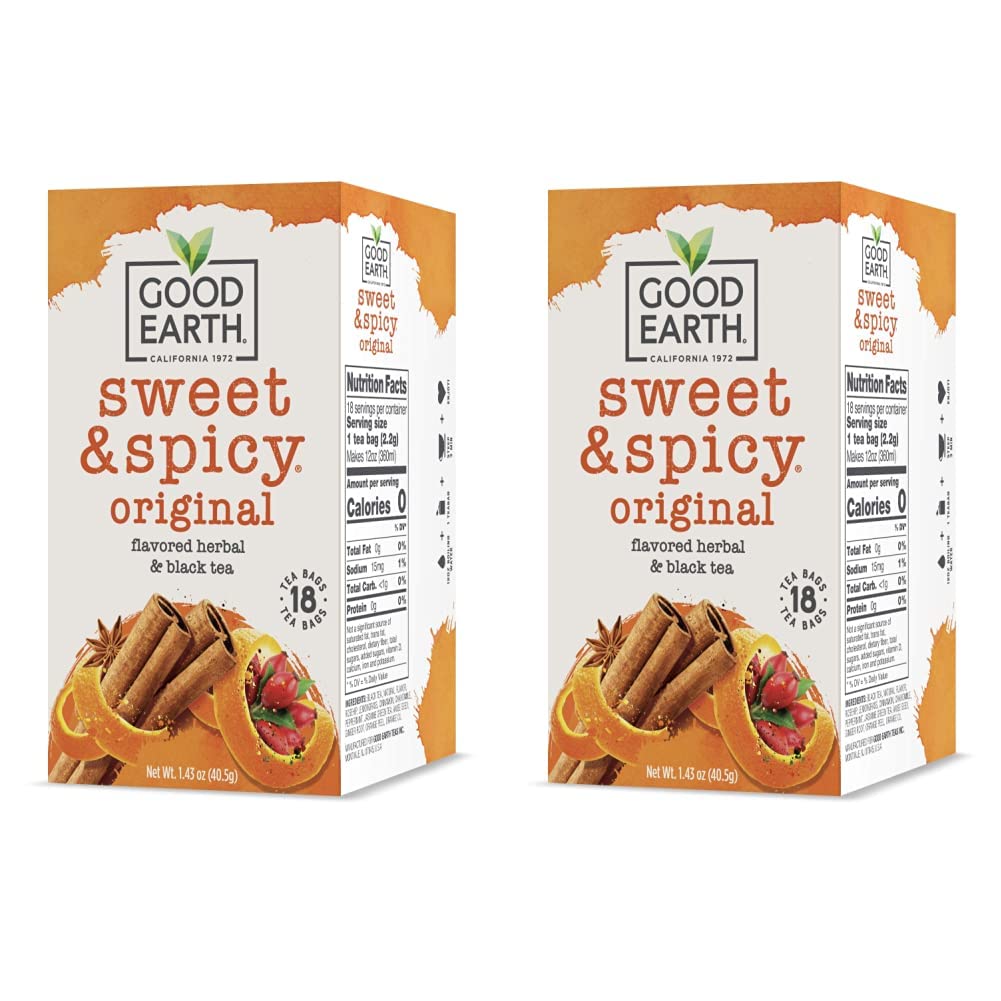 Good Earth Herbal & Black Tea, Sweet & Spicy, 18 Count (Pack of 6) (Packaging May Vary)