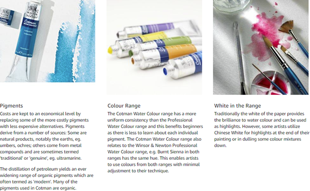 Winsor & Newton Cotman Water Colors are a range of water colors that are made to our normal high quality standards but costs are kept to an economical level by replacing some of the more costly pigments with less expensive alternatives. Each color has good transparency, excellent tinting strength and good working properties. The Cotman Painting PLUS set is part of our pioneering Cotman PLUS range which offers a selection of innovative and modern water color sets for all water color artists. This stylish set is comprehensive and practical in size, making it suitable for studio or outdoor painting. This Cotman Pocket PLUS set contains: 24 assorted Cotman Water Color half pans and a Cotman series 111 No. 3 brush. Typical of all PLUS sets, the Painting PLUS is both practical and versatile. It boasts substantial mixing surfaces including a removable clip on palette which can be clipped on either side of the set for extending mixing and a second internal palette which can be used inside or outside the set on a flat surface. The inside of the lid can also be used for extra mixing when other palettes are removed.