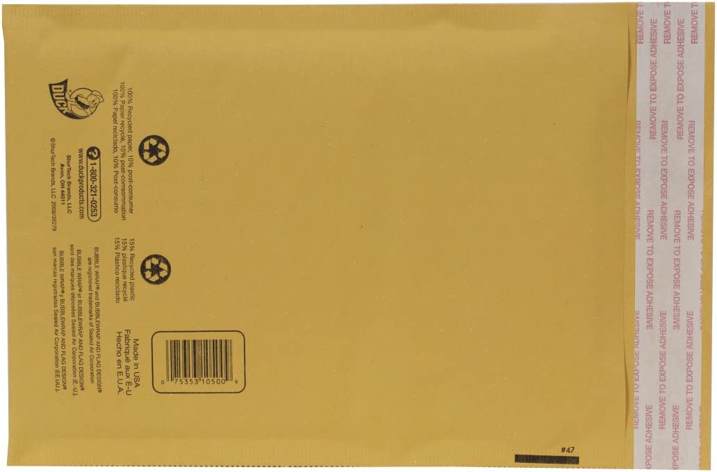 Lightweight, yet durable, Duck Brand Kraft Bubble Mailers help keep a variety of small items safe in the mail while being cost-effective. These mailers are lined with bubble cushioning so you can have more padded protection for shipping valuables you don't want to bend or break in the mail. Available in a wide range of sizes, these mailers are perfect for books, crafts and other compact items. Plus, there's no need to use any tape, making it a durable, dependable and affordable way to mail your belongings.