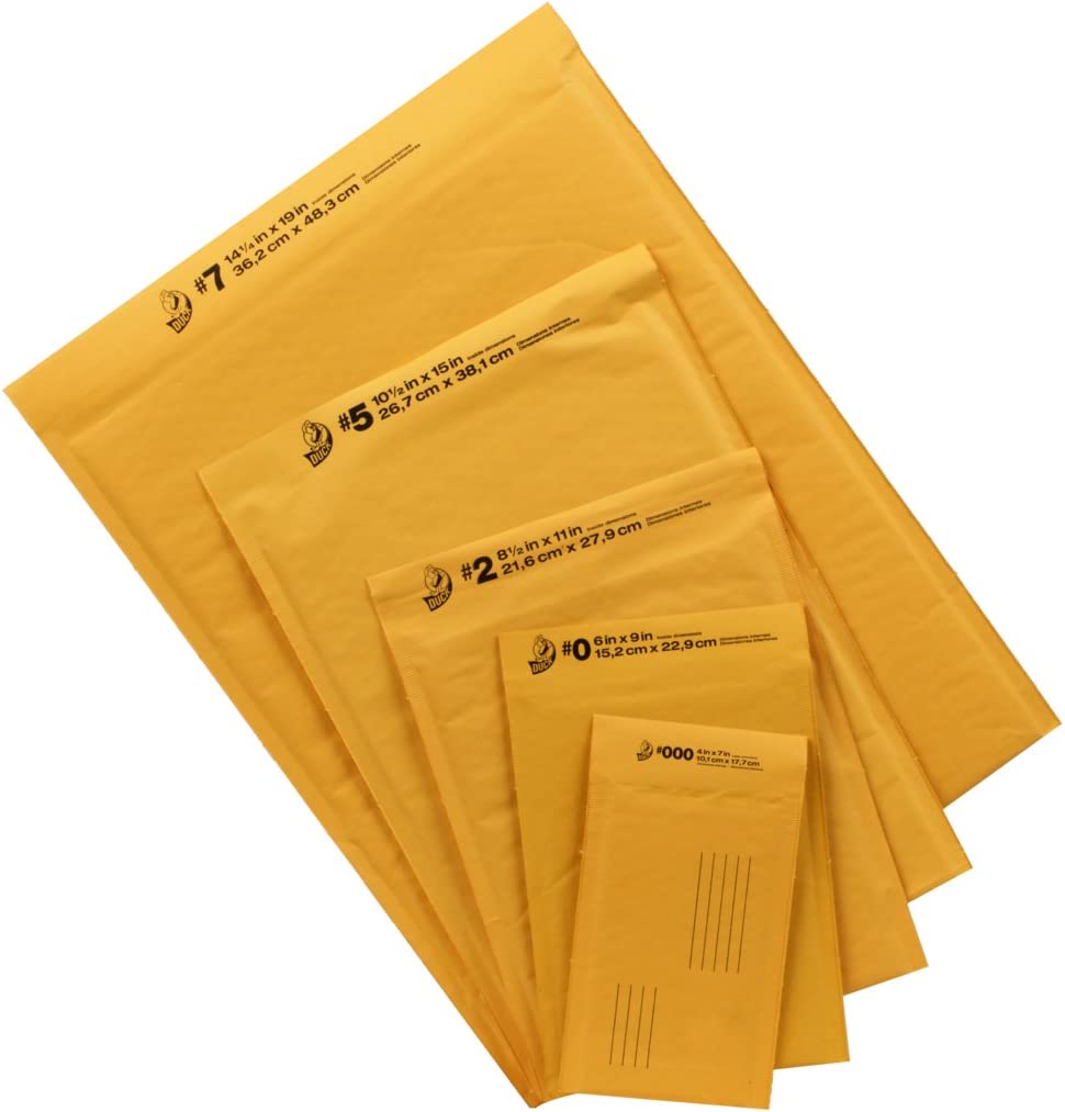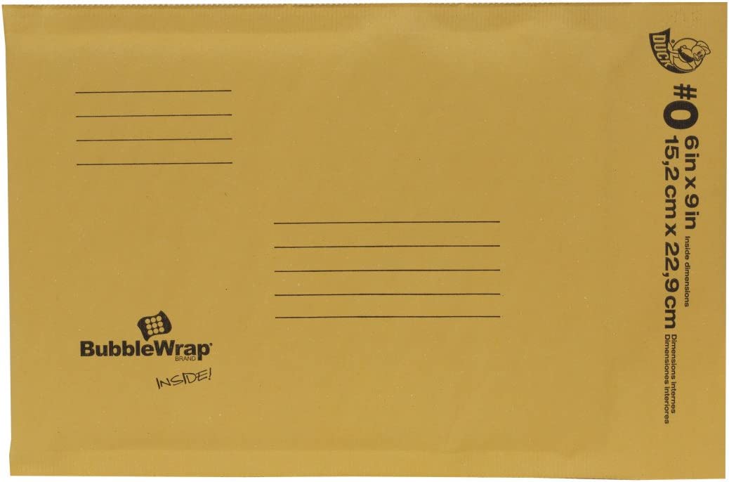Duck Brand Kraft Bubble Mailers, 0-6 x 9 Inches, 5-Pack (284691), Tan