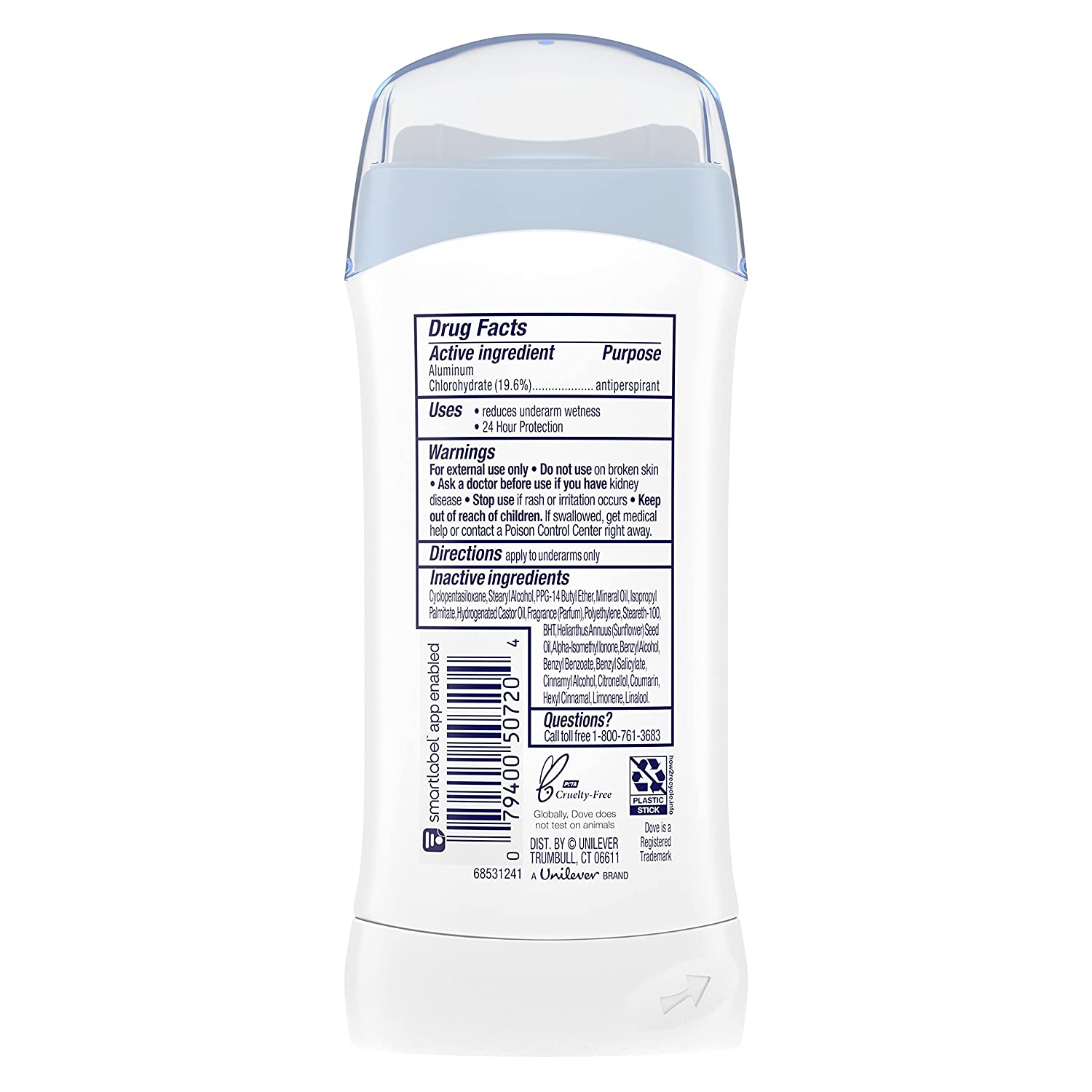 • Dove Invisible Solid Powder Antiperspirant Deodorant Stick provides all day underarm sweat & odor protection