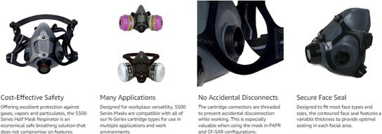 • The 5500 Series incorporates the comfortable and efficient design of the popular 7700 series half mask with the low cost and convenience of a disposable