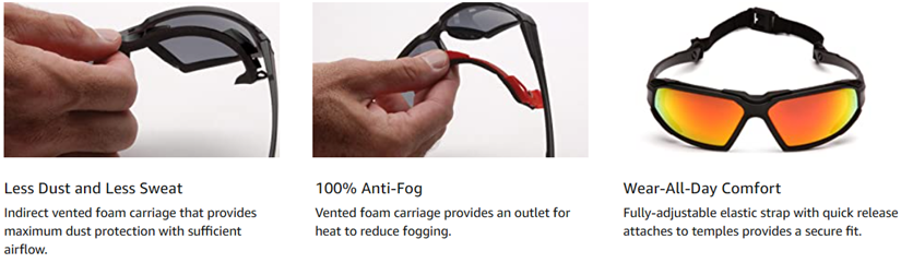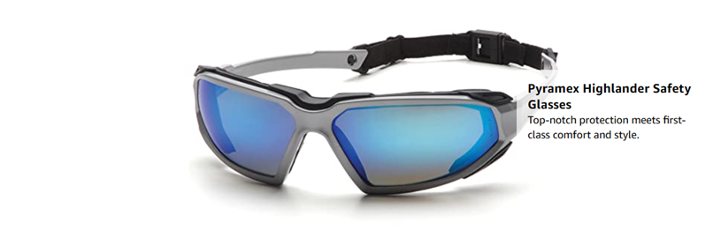 Pyramex Highlander Ice Blue Mirror Lens Safety Glasses feature gray polycarbonate lenses with a double layer of silver and blue mirror coatingCommonly used in outdoor applications,these safety glasses offer protection from excessive glare and provide 99% protection from harmful UV-A and UV-B raysThis lens option is treated to prevent foggingThe lightweight sports styling glasses also feature dual lens that provides maximum protection.ÿ Inner clip provides soft foam for comfort fit and extreme stylingThese safety glasses can be worn with inner foam for additional dust protectionCEÿEN166 Certified.