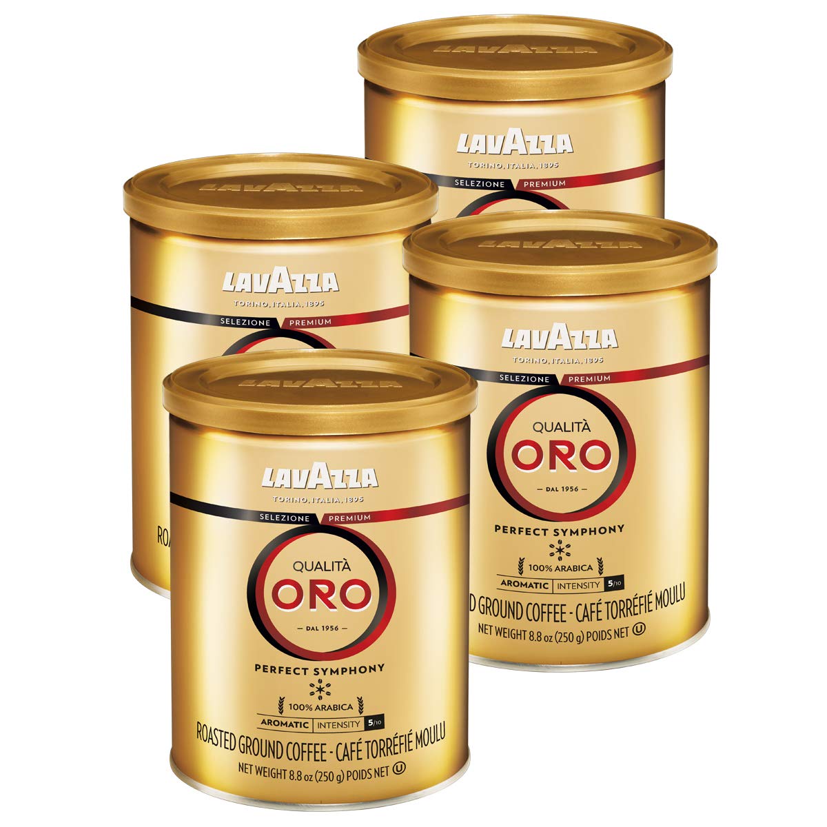 Lavazza Qualita Oro Ground Coffee Blend, Medium Roast, Authentic Italian, Blended And Roasted in Italy, Non GMO, A Full bodied with sweet, aromatic flavor, 8.8 Oz (Pack of 4)