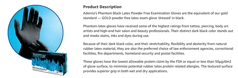 Phantom Latex Exam Gloves have the lowest allowable protein claim by the FDA to minimize natural rubber latex sensitivity. Though powder-free the fully textured surface provides an excellent nonslip grip in wet or dry application. Smooth interior finish for easy donning and comfortable wear.