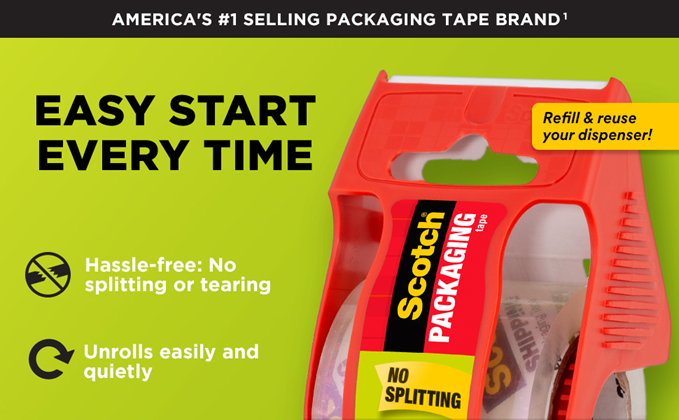Scotch Sure Start Shipping Packaging Tape, 1.88" x 25 yd, Designed for Packing, Shipping and Mailing, Quiet Unwind, No Splitting or Tearing, 1.5" Core, Clear, 6 Rolls (DP-1000RF6)