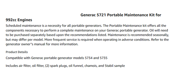 Scheduled maintenance is a necessity to ensure the long life and top performance of your portable generator. If your generator has been running for extended periods or has been stored for several months, it's a good idea to change the oil and fill the tank with fresh gasoline. Be sure to review your owner's manual for the suggested maintenance schedule. Oil must be purchased separately.