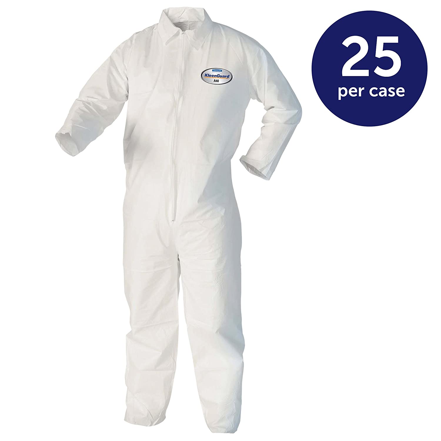 KleenGuard Coveralls A 40 Liquid and Particle Protection Apparel (44303), White, Large, 25 Garments / Case