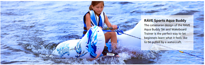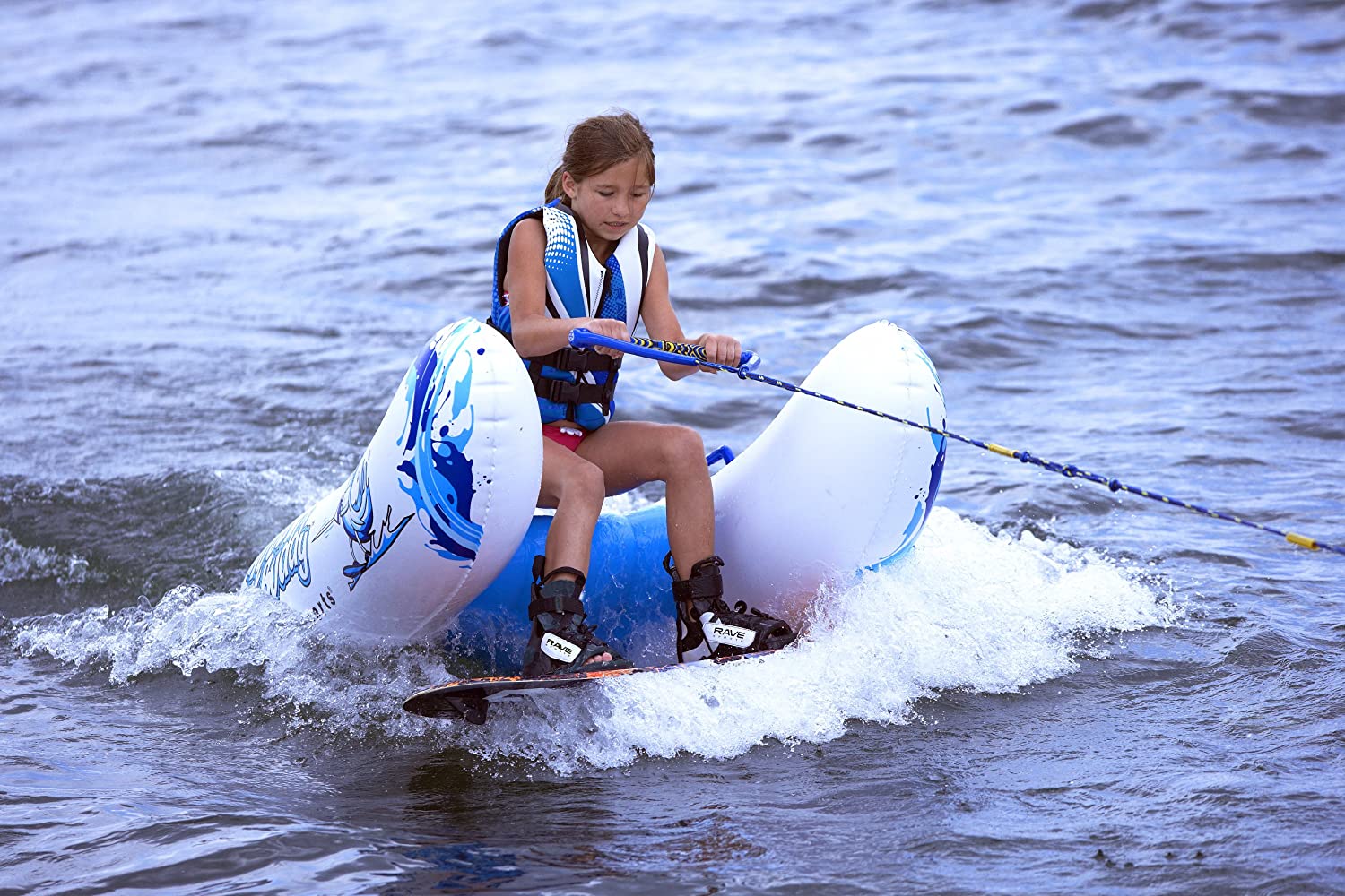 • LEARN TO SKI WITH EASE: Learning to water ski or wakeboard has never been easier! The RAVE Sports Aqua Buddy inflatable trainer is a unique tool that has helped hundreds of kids and adults.