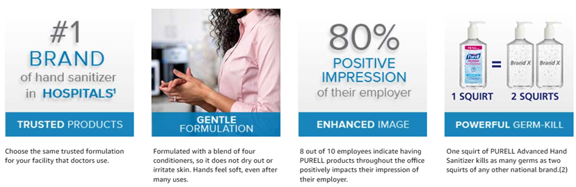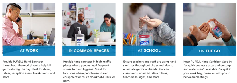 • Place PURELL hand sanitizer at desks, in common areas, and restrooms