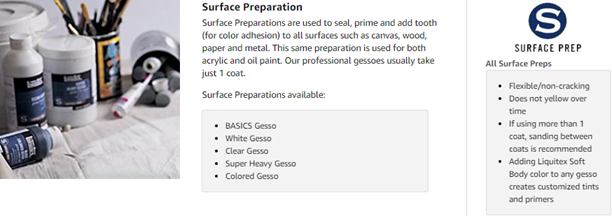 Liquitex offers the broadest range of acrylic mediums to inspire creativity at every stage of the painting process. Surface Prep Mediums are used to seal prime and add tooth (for color adhesion) to all surfaces such as canvas wood paper and metal. This same preparation is used for both acrylic and oil paint. Our professional gessoes usually take just one coat, and adding Liquitex Soft Body color to any gesso creates customized tints and primers. Liquitex Clear Gesso Surface Prep Medium is an ideal high tooth for pastel oil pastel graphite and charcoal. Excellent ground for acrylic and oil paint. Mix with acrylic color to have a tinted ground. Dries clear to translucent depending on thickness. Excellent base coat primer for many applications, including murals. Can be applied to any material or surface that will accept traditional acrylic media, such as canvas, paper, wood, etc. Liquitex Surface Prep Mediums are lightweight, non-toxic, and dry to a water-resistant, non-yellowing surface. APPLICATION: For canvas, paper, wood, or any clean porous non-oily surface. Sizes and primes while maintaining the original appearance of the surface. Provides paper with good tooth for chalk and oil pastel techniques. Mix with a very small amount of transparent or translucent acrylic color to tint the ground, while maintaining transparency. Visit our Liquitex Amazon Storefront for full product assortment.