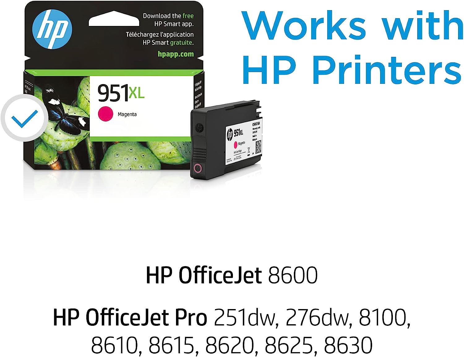 • This cartridge works with: HP OfficeJet 8600; HP OfficeJet Pro 251dw, 276dw, 8100, 8610, 8615, 8620, 8625, 8630