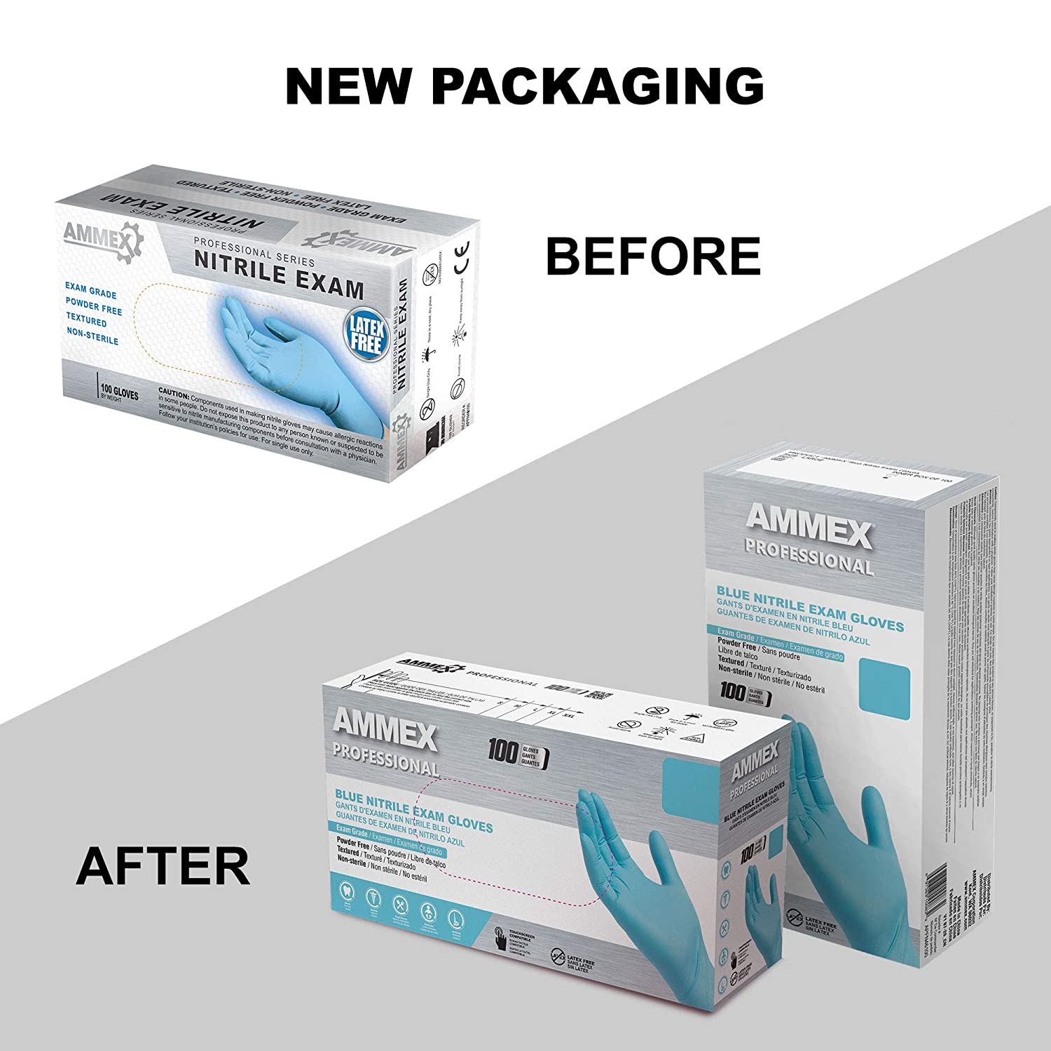 AMMEX Blue Nitrile Exam Gloves, Box of 100, 3 Mil, Size Small, Latex Free, Powder Free, Textured, Disposable, Non-Sterile, Food Safe, APFN42100-BX