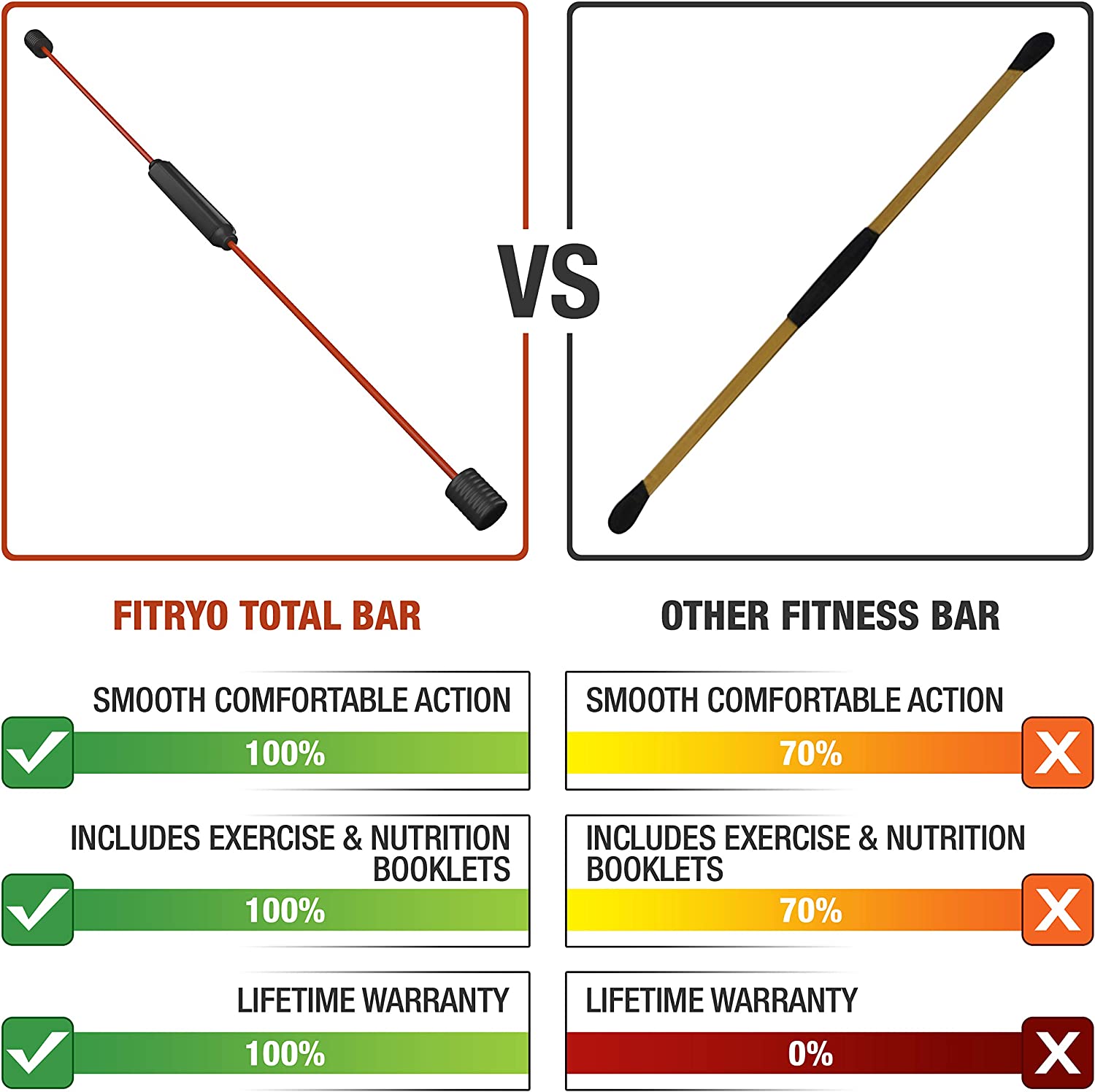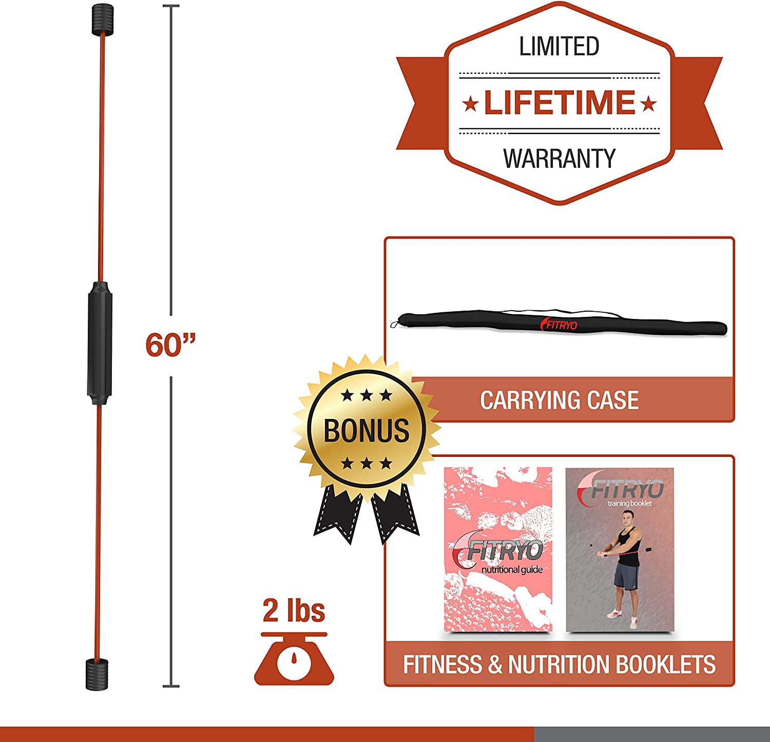 • ?Fitryo Trusted Quality: You will receive one (1) Fitryo Total Bar measuring 59" in length and 2" wide and weighing two pounds, carrying case and workout and nutrition booklets and exercise poster. We stand behind our quality.