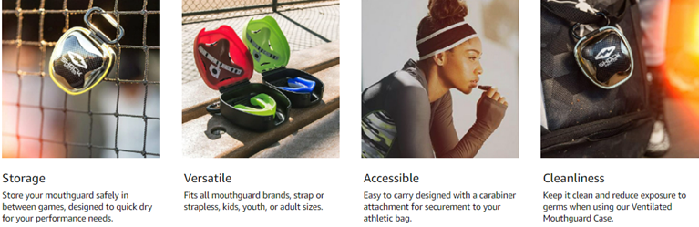 • MOUTH GUARD STORAGE: Store your mouth guard safely in between games off the field. With heavy duty ventilation, your mouth guard will dry quickly for its next use