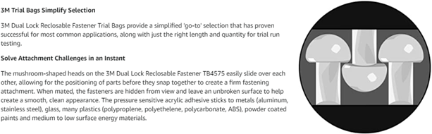 • Interlocking mushroom-shaped heads provide strong, reliable and durable fastening that can be opened and closed multiple times