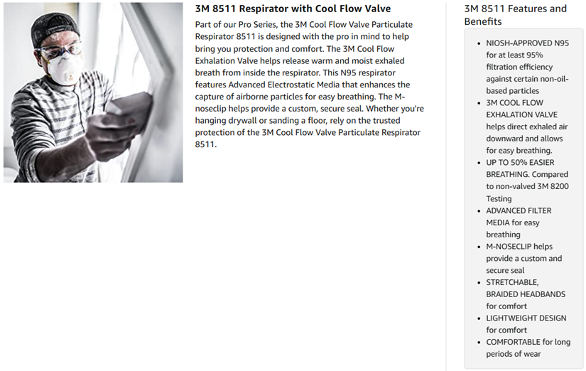 Part of our Pro Series, the 3M Cool Flow Valve Particulate Respirator 8511 is designed with the pro in mind to help bring you protection and comfort. The Cool Flow Exhalation Valve helps release warm and moist exhaled breath from inside the respirator. This N95 respirator features Advanced Electrostatic Media that enhances the capture of airborne particles and is designed for easy breathing. An adjustable M-noseclip helps provide a custom, secure seal. Whether you're hanging drywall or sanding a floor, rely on the trusted protection of the 3M Cool Flow Valve Particulate Respirator 8511.