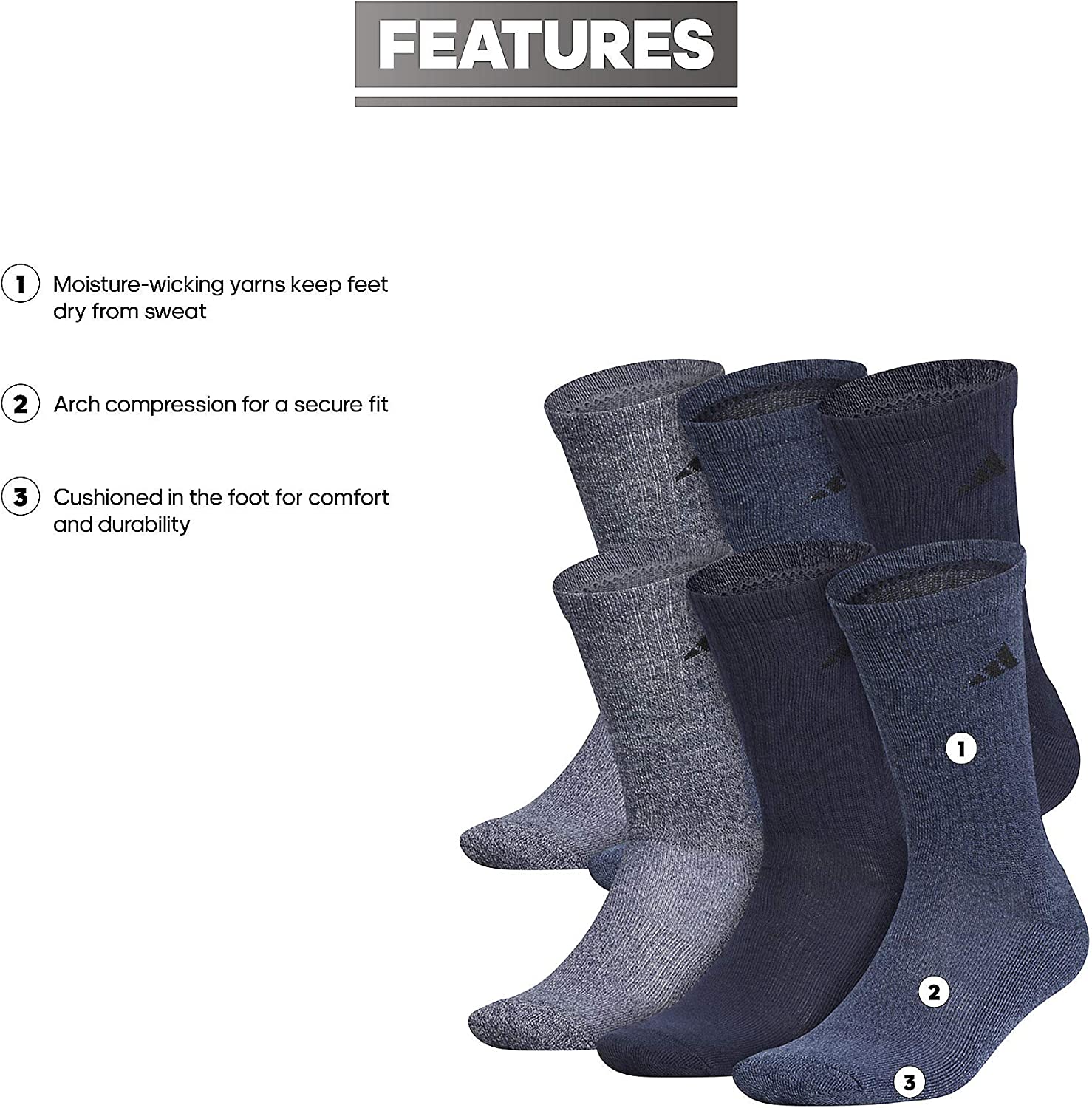 adidas mens Athletic Cushioned Crew Socks (6-pair)