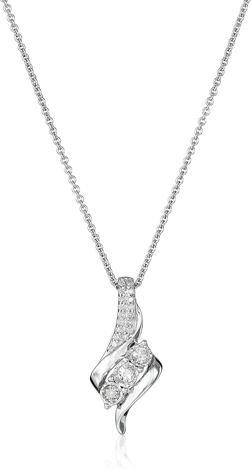 Amazon Collection Diamond 3 Stone Pendant Necklace (1/4 cttw), 18"