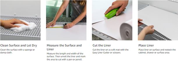Featuring a non-adhesive grip top and bottom, you can use Select Grip EasyLiner Brand Shelf Liner in almost any type of drawer or utility cabinet to protect against scratches and keep your items in place. This shelf liner is easy to remove or replace and is available in a variety of colors, making redecorating a breeze. Pro Tip: Cover narrow drawers and cabinets with 12" and use 20" for large drawers and cabinets.
