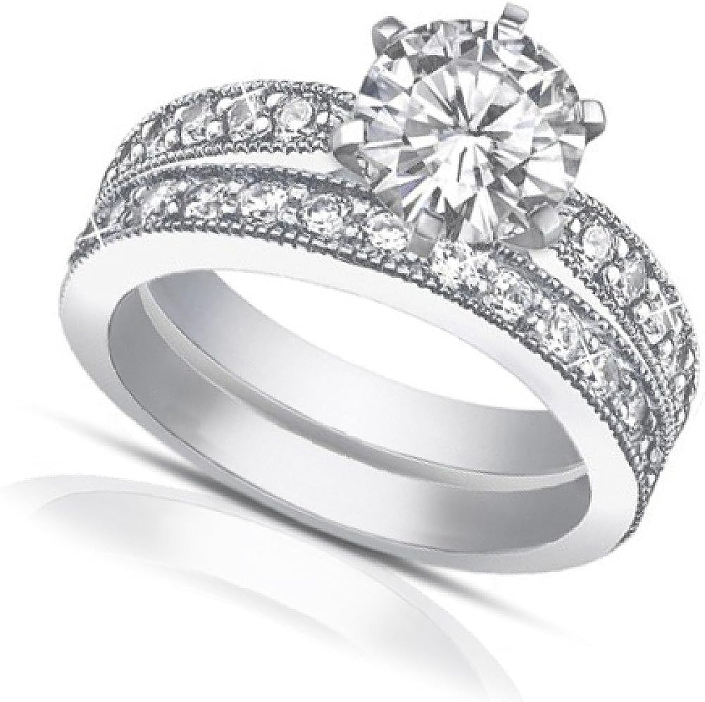 Madina Jewelry 2.25 ct Round Cut Diamond Engagement Ring Set Whit Millgrain on The Shank in 14 kt White Gold