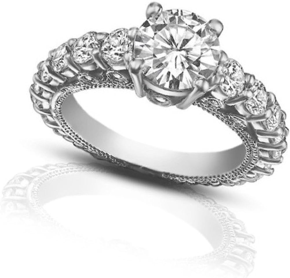 Madina Jewelry 1.90 ct Ladies Round Cut Diamond Semi Mount Ring in Pave Setting in 14 kt White Gold