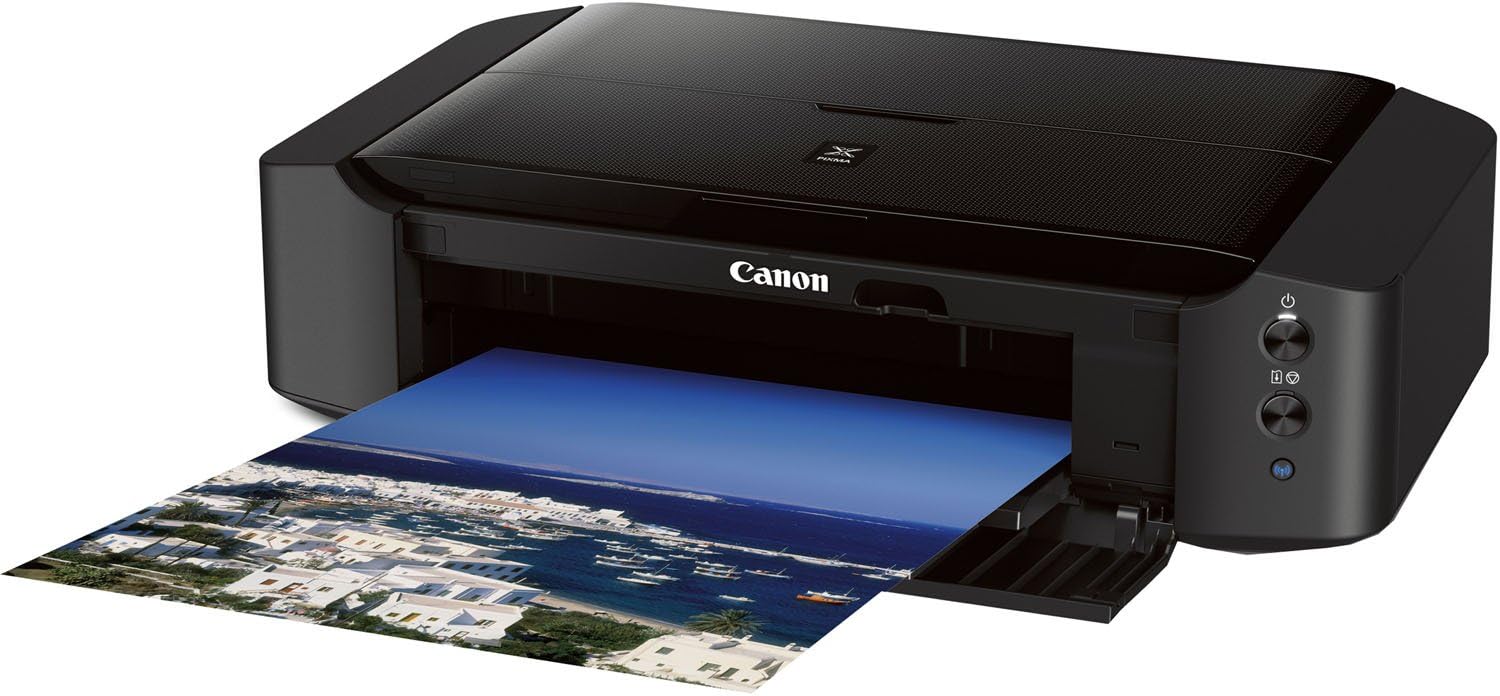 Take your cherished memories to the next level with the Pixma iP8720 Wireless Inkjet Photo Printer. The Pixma iP8720 allows you to print stunning borderless photos up to 13” x 19”! With a 6-color ink system, including gray ink, and 9600 x 2400 maximum dpi color dpi, the detail is amazing. Whether you frame your photos or collect them in a scrapbook, you’ll be able to relive those special moments exactly as you remember them. Conveniently print your creative images with the Pixma iP8720, thanks to its many features like AirPrint, Google Cloud Print and Pixma Printing Solutions (PPS). With PPS you can print photos and documents from your compatible mobile device. Superior Resolution: 9600 x 2400 maximum color dpi produces incredible quality and detail in both your business documents and photos.1 FINE: Features Full-photolithography Inkjet Nozzle Engineering (FINE) with a patented print head firing ink droplets as small as 1pl. Six Individual Ink Tank System: This high performance 6-color ink system includes gray ink for amazing detail in your black & white and color photos. A pigment-based black ink produces exceptionally crisp text. Borderless Photos Fast: Print a beautiful, borderless 4" x 6" photo in approximately 36 seconds.5,13 Print Documents and Web Pages Fast: Print documents and web pages with fast speeds of 14.5 images per minute (ipm) for black and 10.4 images per minute (ipm) for color.6 ChromaLife100+: This system combines enhanced FINE print head technology with select genuine Canon photo papers and inks for beautiful borderless photos that will last up to 300 years when stored in an archival-quality photo album.7 Auto Power On: This convenient feature automatically powers up the printer whenever you send a photo or document to be printed. CD/DVD Printing: Enjoy the ability to print on CDs and DVDs. Full HD Movie Print: Full HD Movie Print software turns your favorite HD movie clips captured with select Canon EOS Digital SLRs, PowerShot digital cameras and VIXIA camcorders into beautiful prints.9 My Image Garden: My Image Garden software makes organizing and printing your photos fun and easy with great facial recognition, Special Filters, Calendar Organization, Automatic Layout Suggestions and so much more!8 Creative Park Premium: An exclusive service for users of genuine Canon inks, offering access to photos, templates and more.10 Quiet Mode: This considerate feature lets you print anytime without worrying about disturbing those around you. Built-In Wireless: Print wirelessly from any Wi-Fi enabled computer around the house.2 Pixma Printing Solutions (PPS):Pixma Printing Solutions (PPS) lets you print photos or documents from your mobile device using the free PPS app.11 AirPrint: Print wirelessly and effortlessly from your compatible iPhone, iPad, or iPod touch – no drivers needed!3 Google Cloud Print: Allows users to print from Gmail and Google Docs on a mobile device, and from Google Chrome browser for Mac, Windows, Linux, and Chrome devices. With Google Cloud Print, you can print from wherever you are, from applications you use every day. You can even share your home and work printers with anyone you choose.4 Wireless PictBridge: Allows you to send photos directly from your wireless PictBridge (DPS over IP) compatible camera to the printer without the use of a computer.12 Hi-Speed USB: Plug the cable into your PC for a super-fast connection for your data transfers
