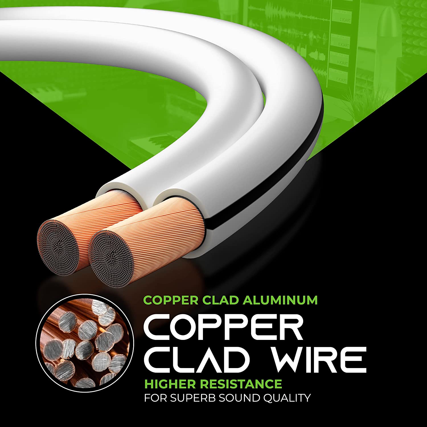 • ADVANTAGE OF CCA (COPPER CLAD ALUMINUM) – Here are the facts about CCA vs Oxygen Free Copper. CCA wire offers the same signal frequency and reliability in terms of corrosion resistance to copper wire. The advantage of the CCA speaker wire is lighter and more flexible than copper wire. The cost of CCA vs Oxygen free copper is much lower and you can enjoy the same functions and reliability as copper wire without paying the extra cost for the installation.