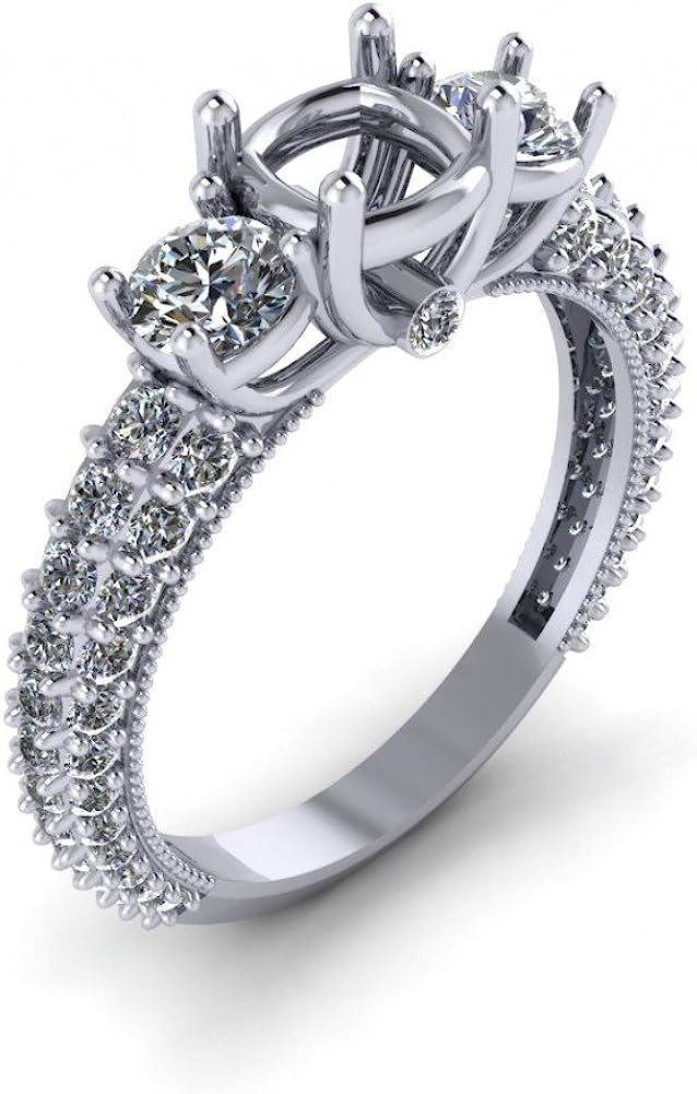 Madina Jewelry 1.90 ct Ladies Round Cut Diamond Semi Mount Ring in Pave Setting in 14 kt White Gold