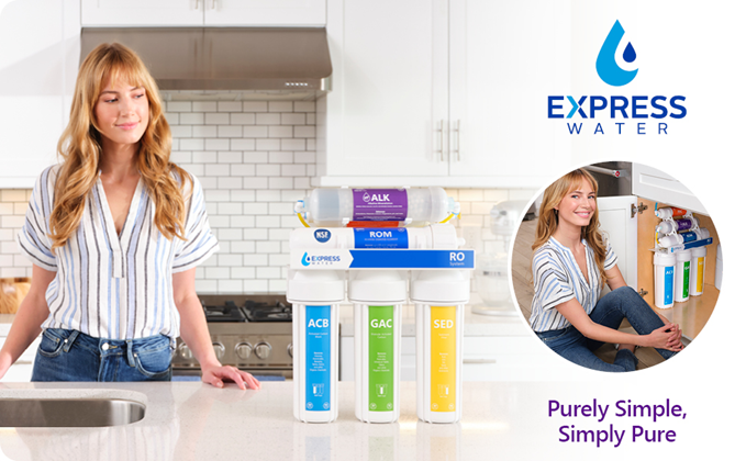 Make the purest alkaline mineral water with your own home alkaline water system. Great in the kitchen: Improve the taste of your cooking, coffee, ice, and drinks. Experience true Reverse Osmosis purification. Safe filtered fresh tasting H2O: Removes up to 99.99% of contaminants including Lead, Chlorine, Fluoride, Cyanide, Giardia, Radium, Asbestos, Calcite, Heavy Metal, Bacteria, Viruses, Pharmaceuticals, and over 100 other contaminants. Get setup fast with our Quick Connect tubing system. Long lasting filters of the highest capacity standards mean you only need to change your filters every six months. Includes fast flow faucet with 0.8 GPM delivery. A compact system made to fit under a sink in a cabinet. Best for house, apartment, residential, well water, industrial, rv, machine, and office uses. Certified by an independent laboratory to NSF standard 58.Comes with 4 gallon (3.2 gallon water capacity) storage tank and tank stand. Your tank can sit upright or on it’s side to make sure it fits under most kitchen cabinets. Includes all filters needed for setup and first 6 months of use. Can be wall / cabinet mounted or freestanding, made for indoor use. Can be installed undersink, in a basement, or other remote locations, you may need additional tubing or a delivery pump depending on how far away you plan to install or if you plan to link to a refrigerator as well. For every one gallon of water produced the system discharges between one and three gallons (depending on the pressure and quality of your incoming water). The system is compatible with 3/8" and 1/2" under sink connections. Includes filter housing wrench. Operates on 40-80 PSI water pressure, you may need a Booster Pump or Pressure Regulator depending on your water pressure. The water is cleaner and more convenient than any pitcher, faucet filter, or counter top systems. Express Water’s 10 Stage Reverse Osmosis Water Alkaline Filtration System ROALK5D is the complete solution for your drinking water.