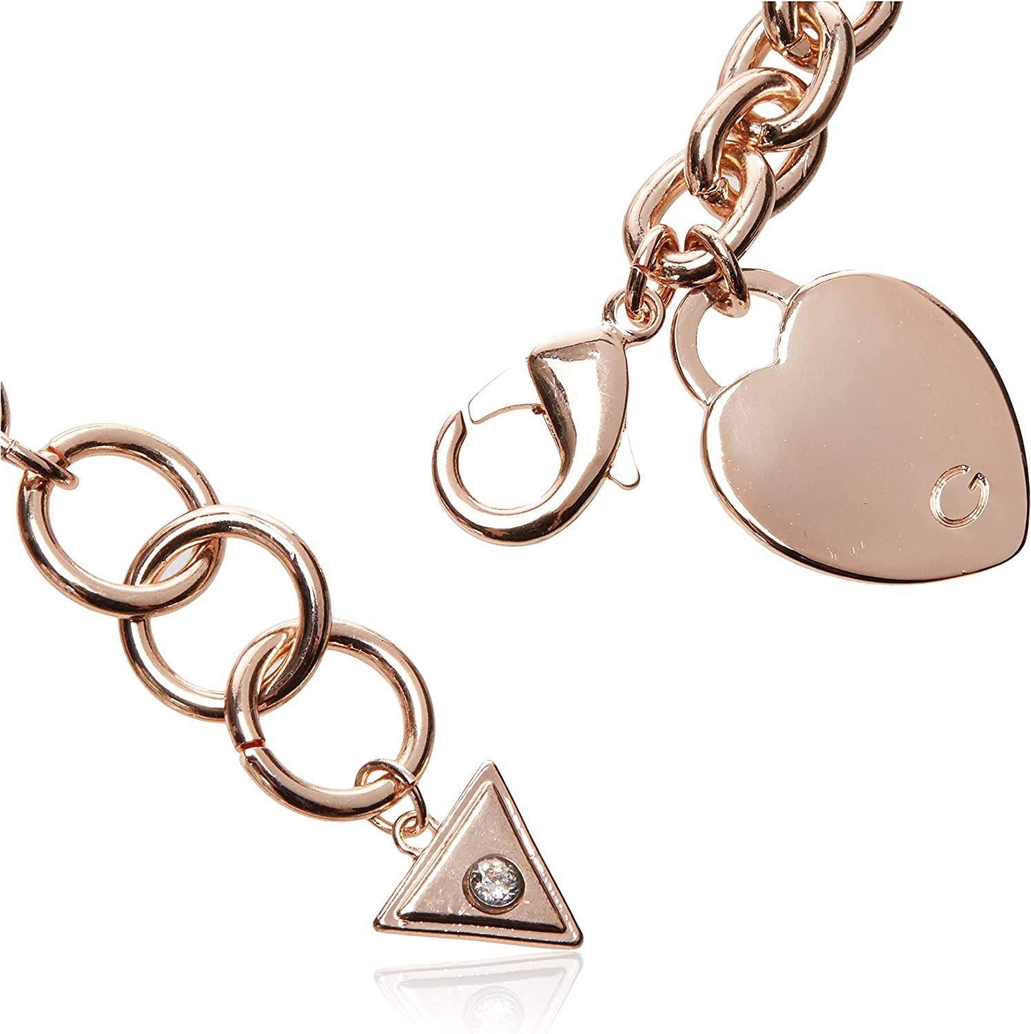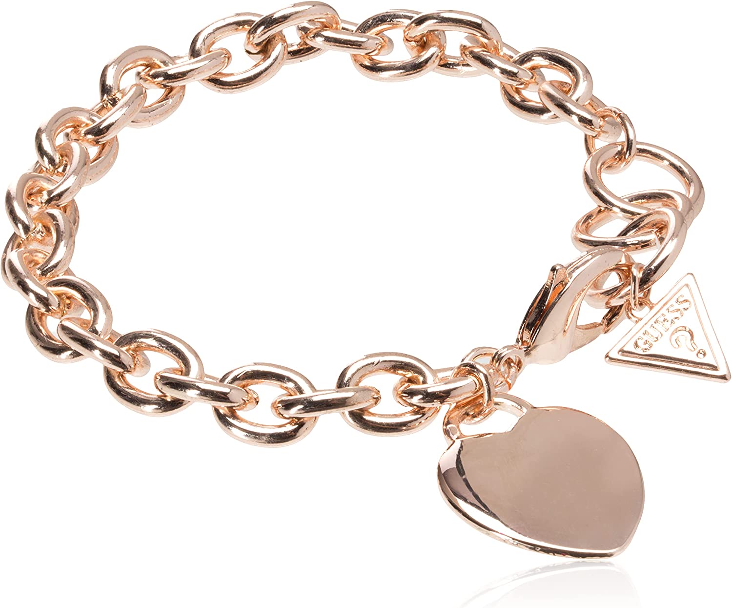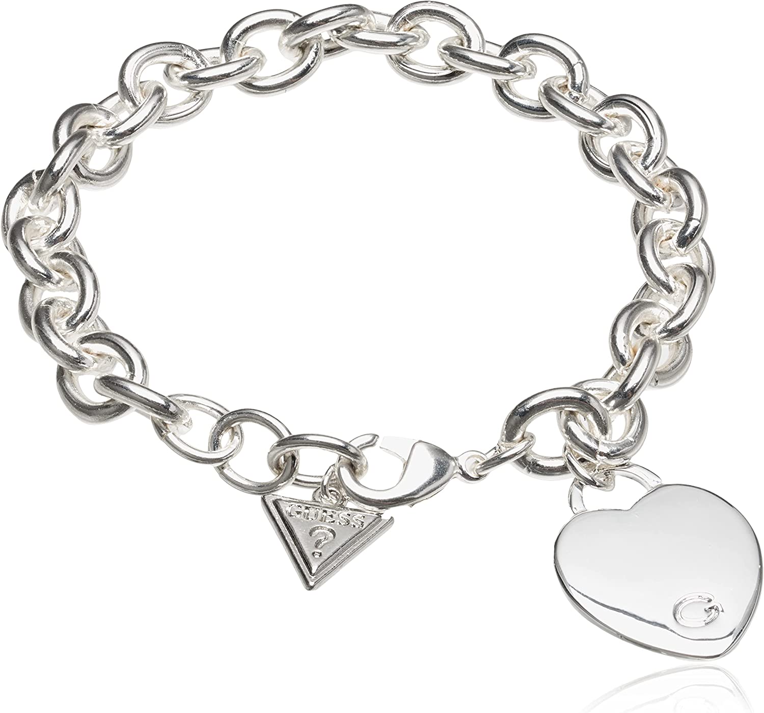 Chunky link-chain bracelet featuring flat heart charm and lobster-claw clasp