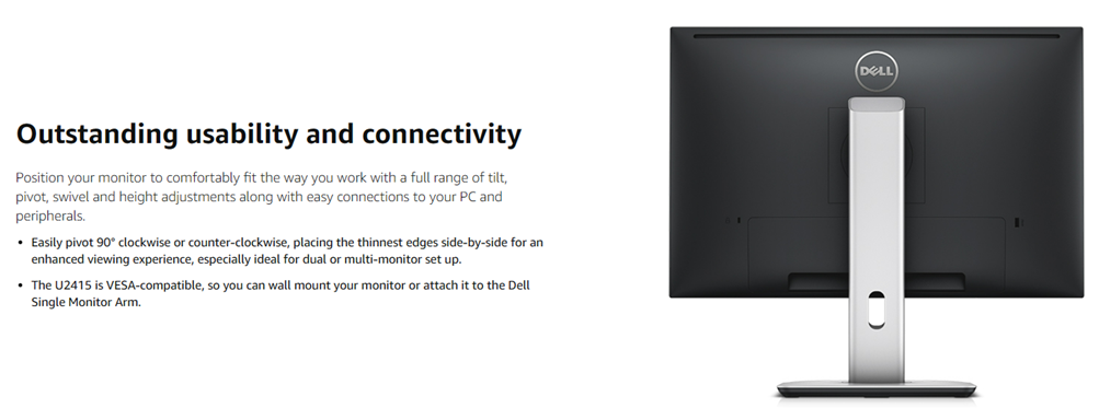 - Consistent colors right out of the box- the U2415 comes factory tuned at 99% sRGB coverage at a deltaE less than 3.