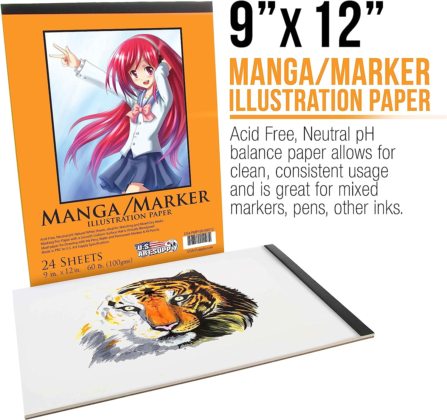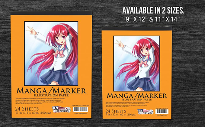 U.S. Art Supply 9" x 12" Premium Manga-Marker Paper Pad, 60 Pound (100gsm), Pad of 24-Sheets (Pack of 2 Pads)