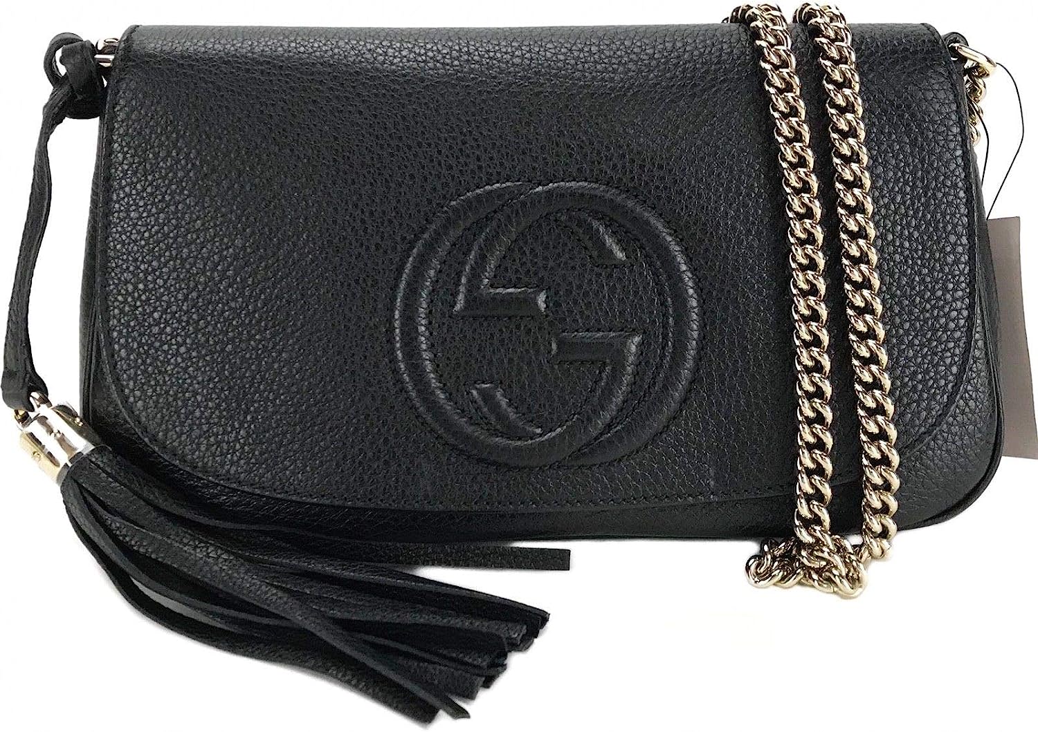 Gucci Soho Leather Flap Shoulder Bag Black Gold Tassel New Authentic