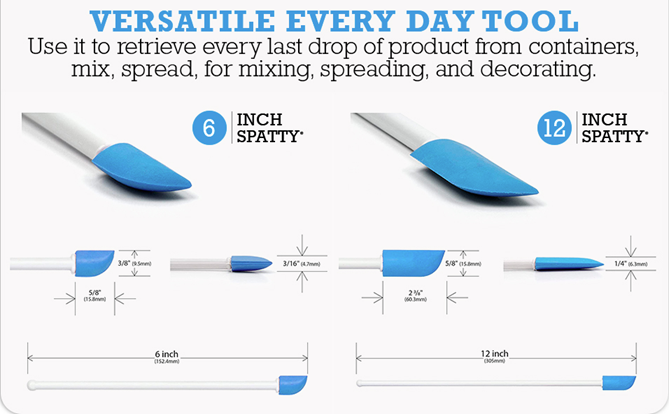 - MONEY SAVING MINI SPATULA – The Spatty and Spatty Daddy Blue 6 and 12 Inch Set are tiny kitchen spatulas that scrape empty up to 25% more grocery food product for you to mix, spread and decorate