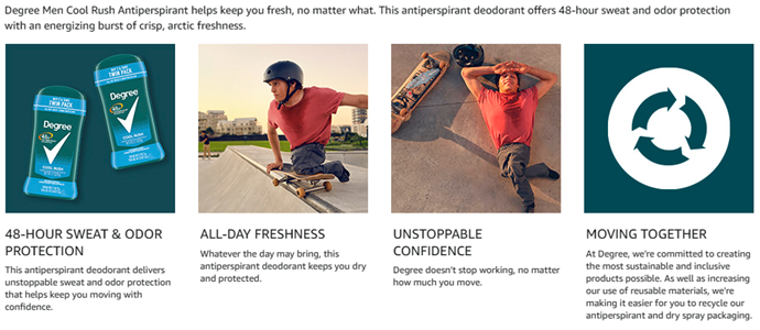 • GO BEYOND YOUR LIMITS: At Degree, we want to inspire the confidence in everyone to move more and go further. We’re here to support your journey through an antiperspirant for men that moves with you
