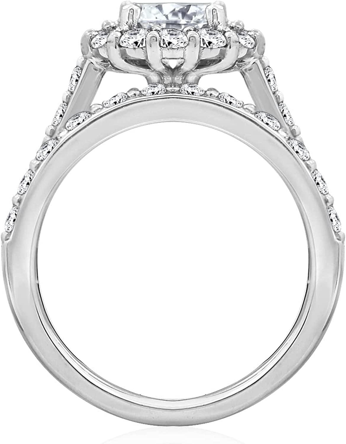 Flower halo ring, set with centerpiece and halo of Infinite Elements Cubic Zirconia