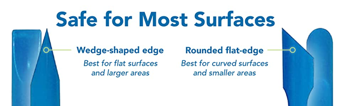 - No-Scratch Super Scraper - One side of your Scrigit Scraper tool has a flat edge that's best for flat surfaces and larger areas. The other side has a round edge, best for curved surfaces and smaller areas. Dishwasher safe and easy to hold, just like a pen.