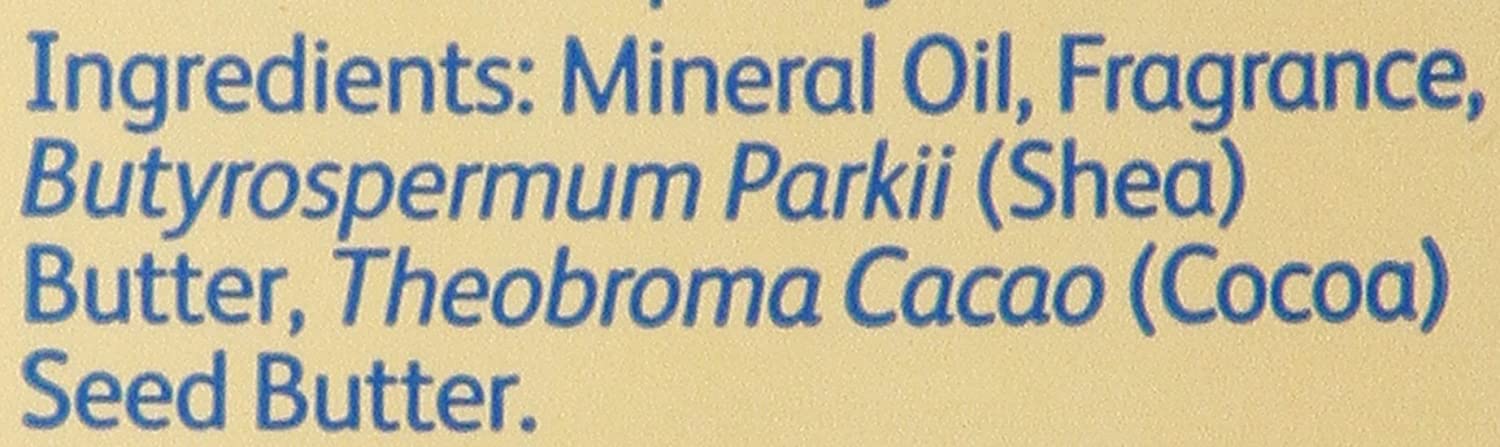 20-fluid ounce bottle of pure baby oil, enriched with shea & cocoa butter, formulated to help moisturize babies' delicate skin, and protect skin from dryness, great for relieving dry skin or rough patches