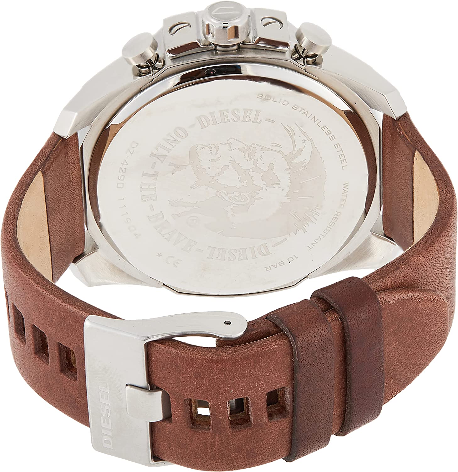 • The watch says it all: Only The Brave. When you wear those words featured on a Diesel Mega Chief chronograph dial, you show the world how you live each minute. In fact, the watch's three sub-dials track minutes, seconds, and tenths of seconds.
