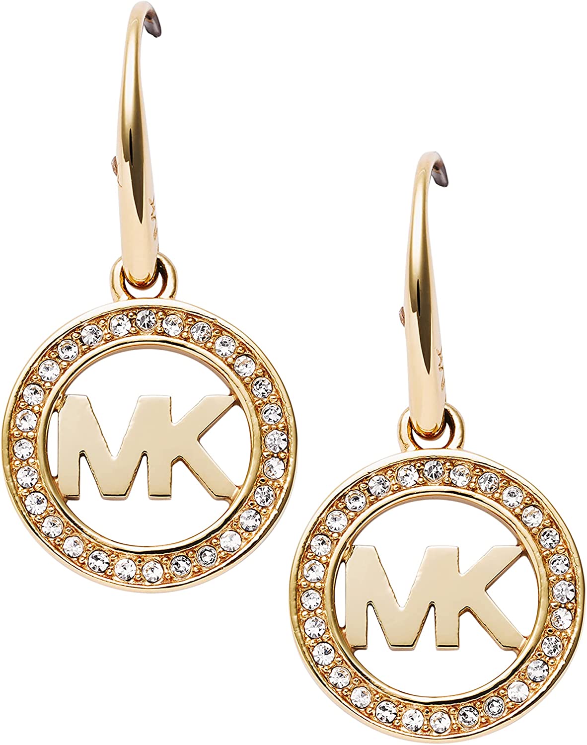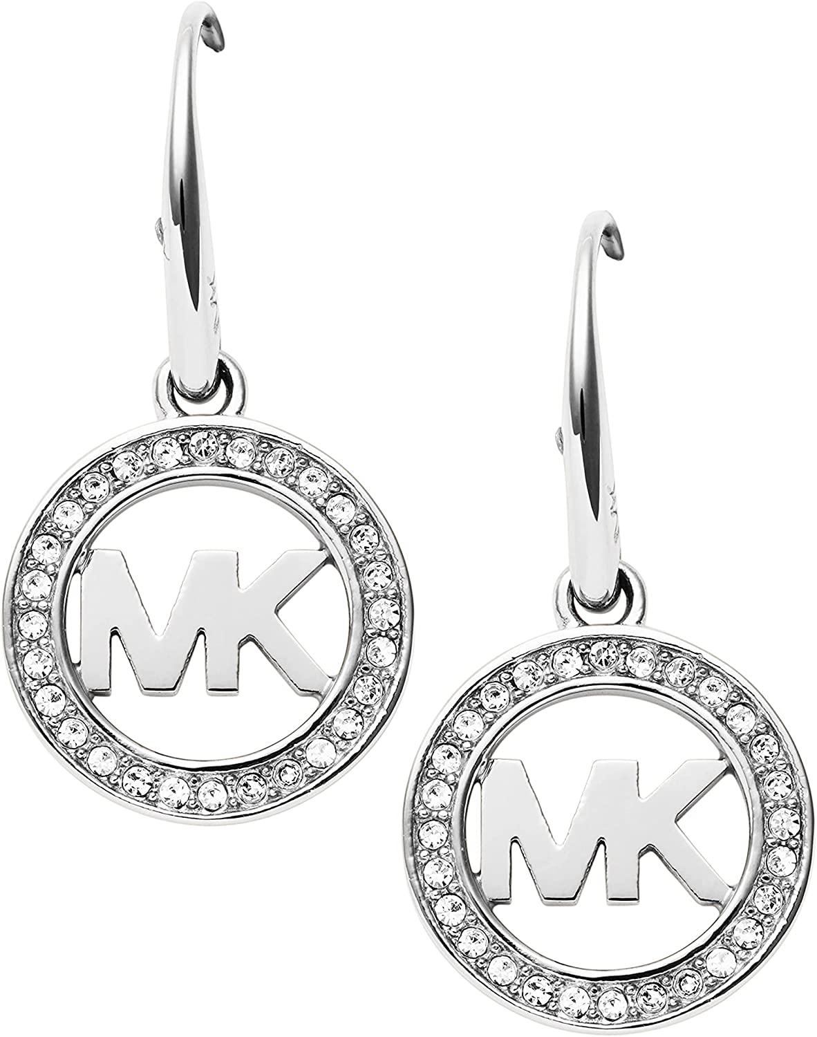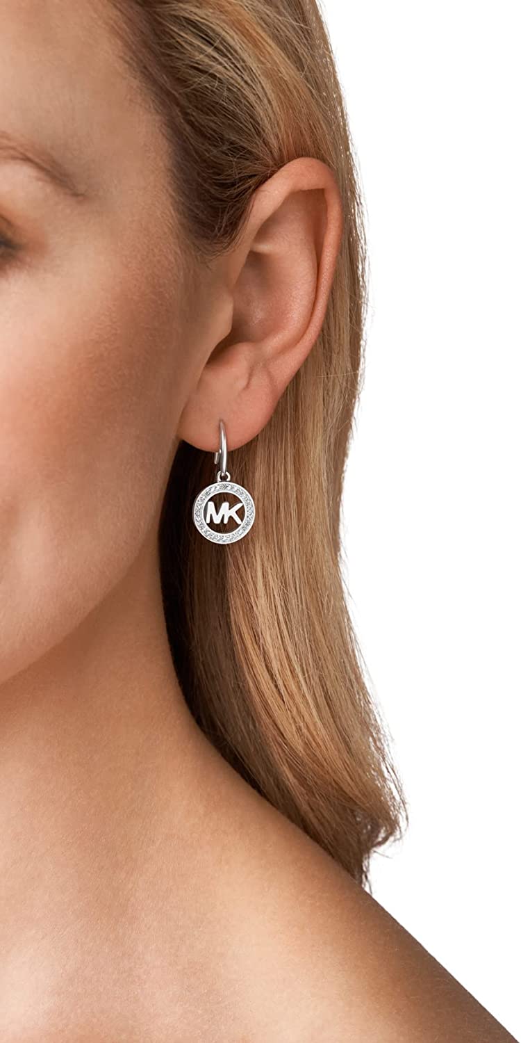 • These stainless steel drop earrings feature the classic Michael Kors logo surrounded by sparkling pave crystals.