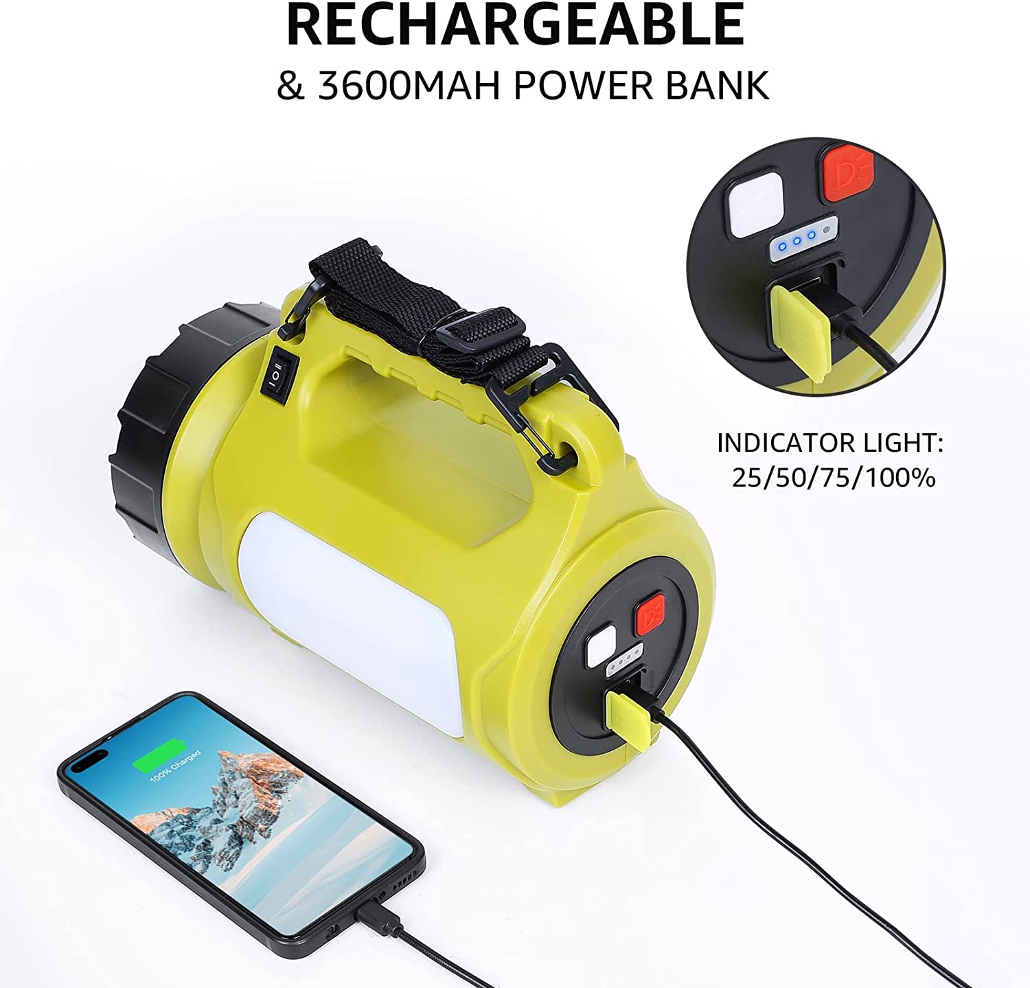 • USB Rechargeable with Power Bank Functionality: Our lantern incorporates built-in rechargeable batteries, chargeable through the provided USB cable. Its power bank feature allows it to double up as a charger for your mobile phone, with blue indicators on the base showing the battery level.