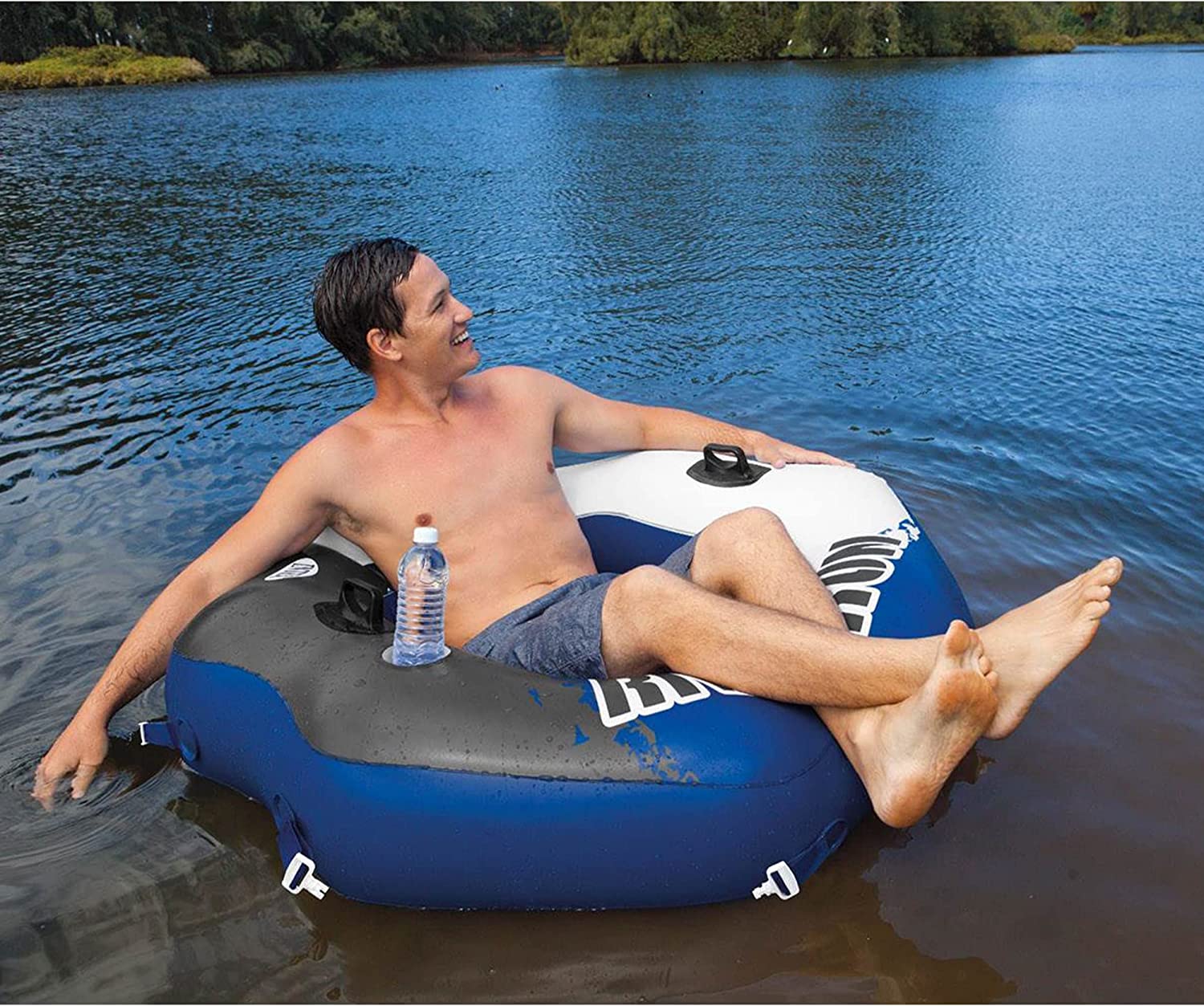 • Built-in cup holder to keep your refreshment nearby as you relax in the water