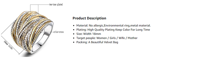 Mytys 2 Tone Intertwined Crossover Statement Ring Fashion Chunky Band Rings for Women Black Gold Silver Rose Gold Plated Wide Index Finger Rings Costume Jewelry