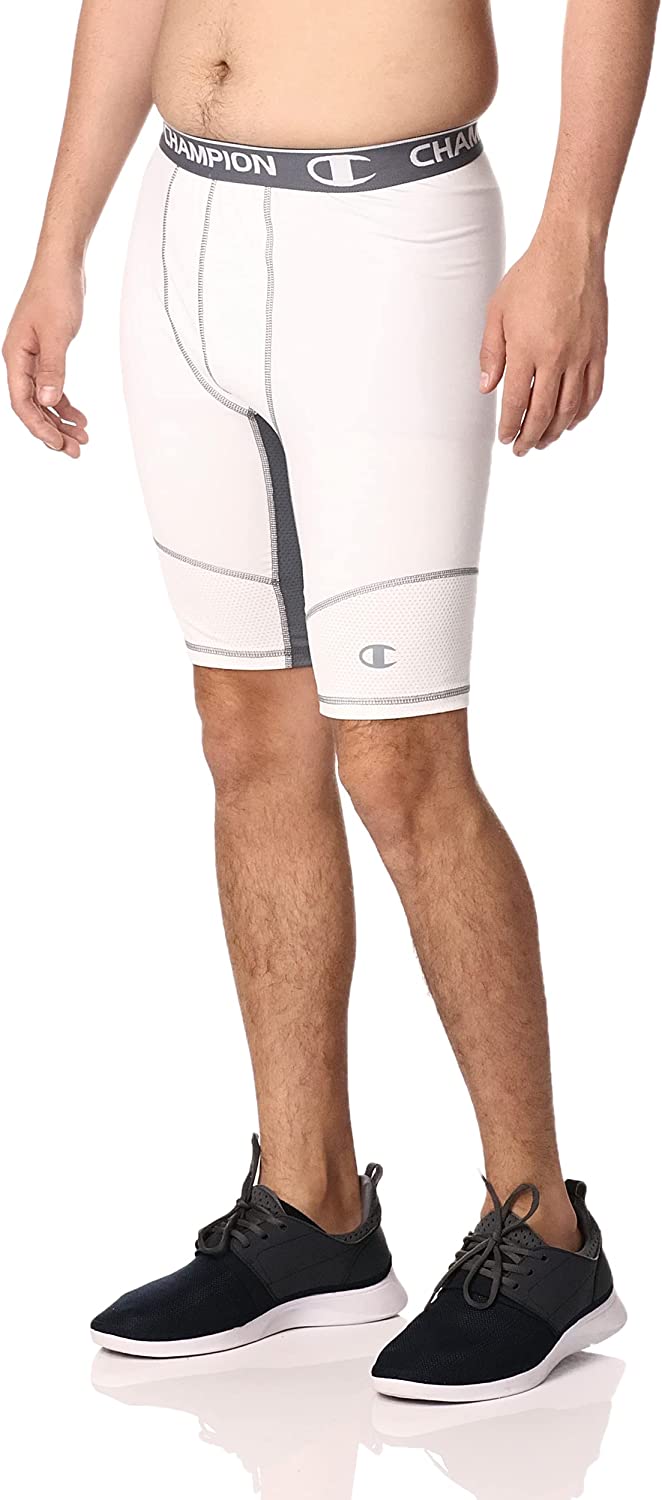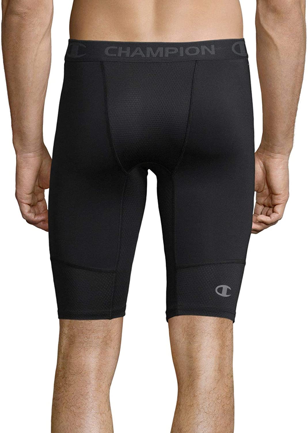 • THE SHORTS OF A CHAMPION - Men's compression shorts display the Champion logo at the waistband and the iconic "C' logo at the left hem.