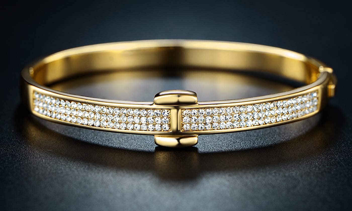 • Look like a Celebrity with our gold plated bling bracelet which is the perfect accessory to wear everyday for any occasion. Get complimented from everyone wearing this high polish gold plated crystal bangle.