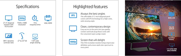 - Environmental features: Mercury-free LED backlighting, Arsenic-free monitor glass, and the low halogen design promote energy efficiency