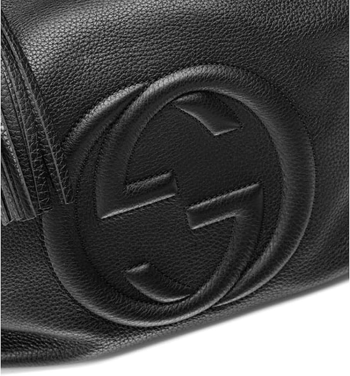 • This black Gucci bag exudes luxury with its beautiful leather and gold-toned hardware. The famous interlocking GG logo is displayed proudly on the front. With a zipper pocket and two open pockets befitting of a phone, you'll have space to organize what you need to bring with you.
