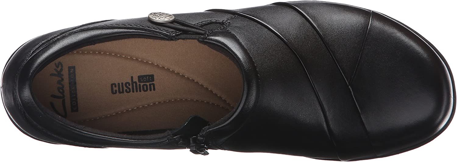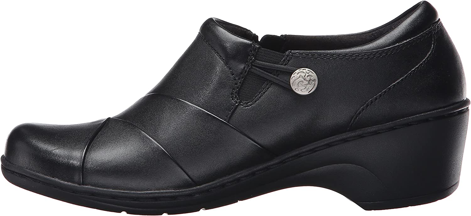This women's shoe from the Clarks collection delivers comfort right out of the box. It features soft fabric linings, ortholite cushioned foot bed, and super lightweight, shock-absorbing eva outsoles. Its wear-everywhere style is the perfect fit for various occasions; from office meetings to weekend get-togethers.